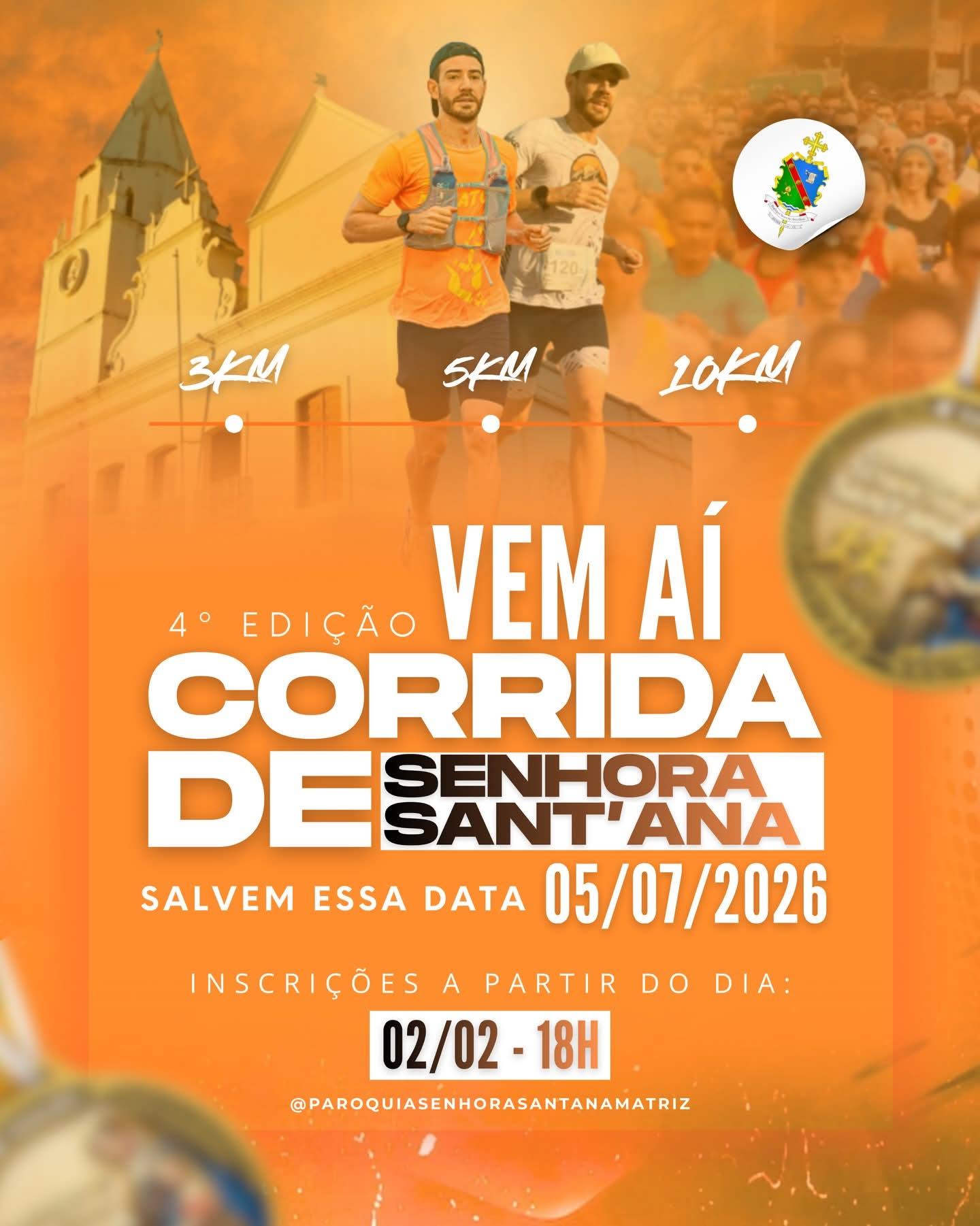 A corrida será realizada no dia 05 de julho de 2026, com largada e chegada na Praça da Matriz, no centro da cidade. O evento é uma das atividades esportivas que integram as celebrações em honra à padroeira Senhora Sant’Ana.